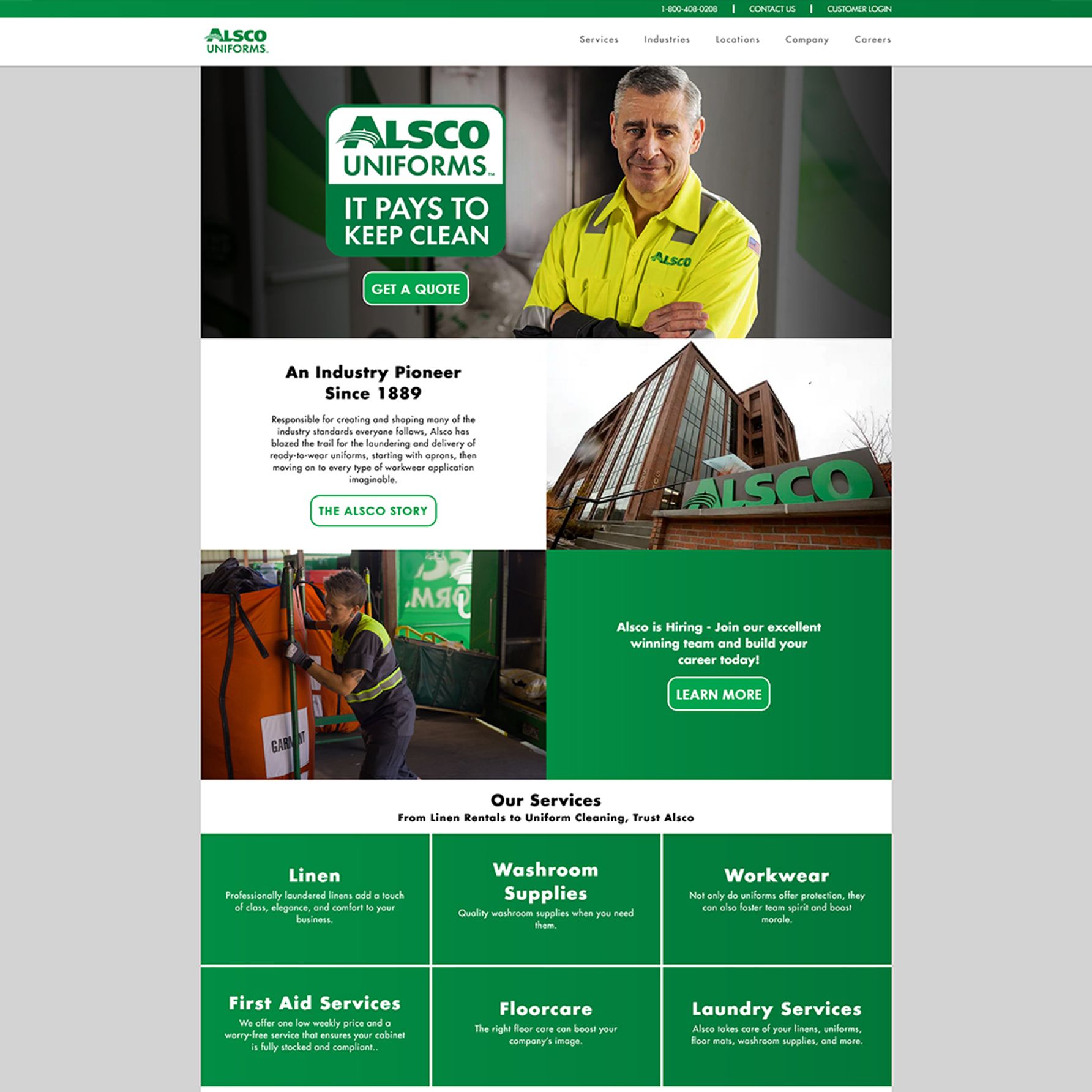 Alsco Uniforms is a global pioneer in linen and uniform rental services—founded in 1889 and widely regarded as the company that defined the industry. While their services had evolved, their website hadn’t kept up. The digital experience was falling short of customer expectations, and no longer reflected the innovation Alsco is known for.